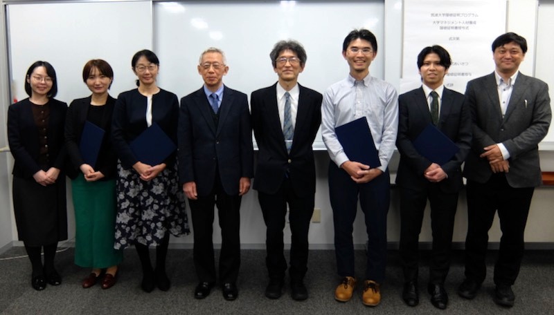2025年4月28日に、筑波大学東京キャンパスにおいて履修証明書の授与式が開催されました。遠隔地の修了者からもオンラインでご出席いただきました。授与式後の懇親会では、それぞれの大学の発展的未来について活発な意見交換が行われました。