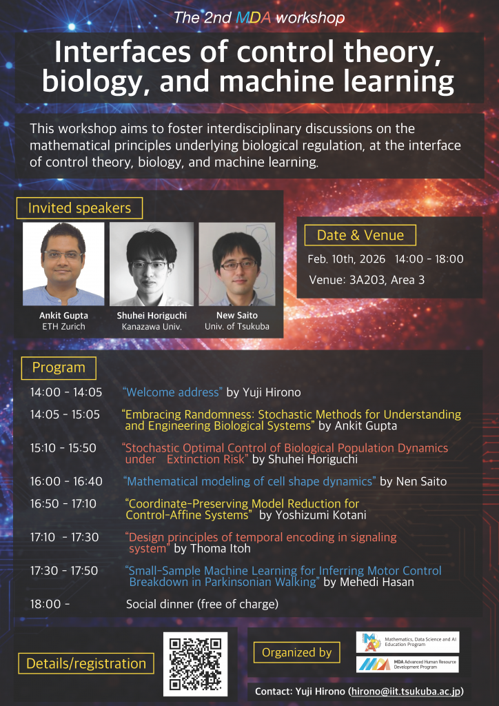 第2回MDAワークショップ開催案内「Interfaces of control theory, biology, and machine learning」