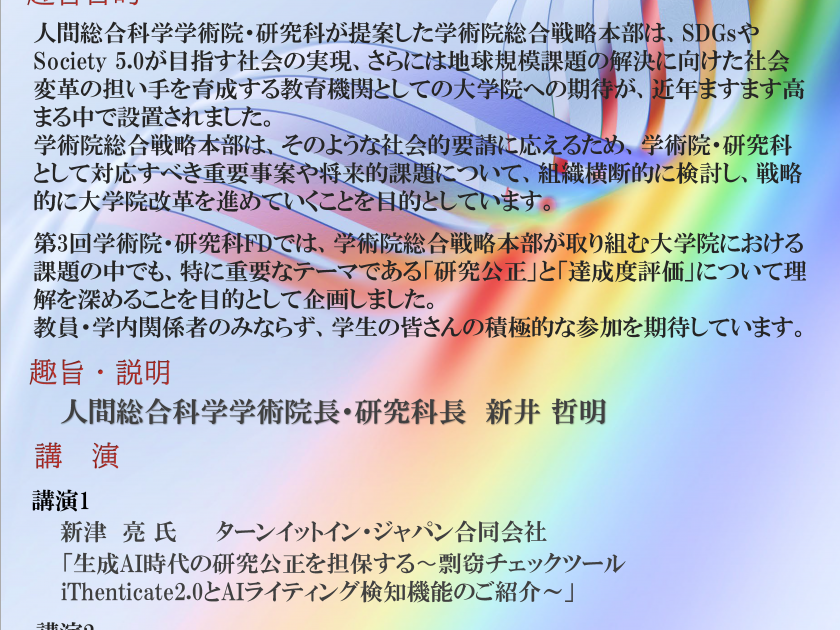 Graduate School of Comprehensive Human Sciences 3rd FD Program 2025 Research Integrity and Achievement Assessment – Presented by the General Strategic Headquarters, Graduate School of Comprehensive Hu